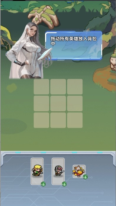 1. 第一步,玩家要将各类显示出的英雄拖拽至背包格子当中。