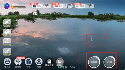 2、挥杆后玩家可以通过看漂来确定是否有鱼上钩。
