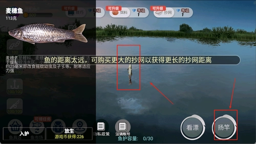 3、装备升级系统强化钓具性能,提升钓起大型鱼类的成功率与效率。