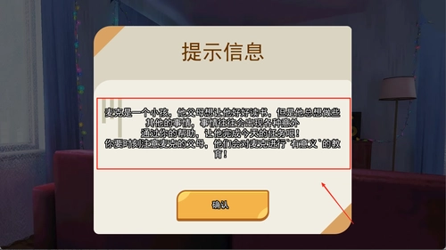 2、心理博弈玩法要求与家庭成员周旋,通过对话选择影响他们对你的信任度,创造更多自由活动空间。