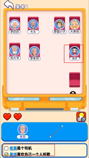 2、根据提升,将人物放入正确的座位。