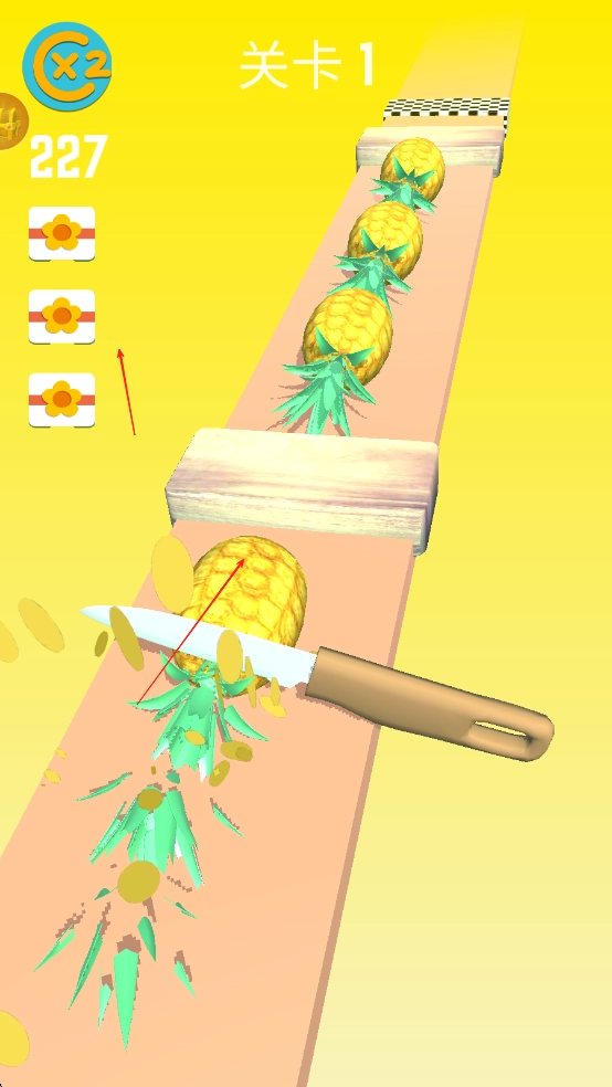 3、只要在规定时间内达成水果切割目标就能通关,累积的分数能够解锁钻石刀具、光效刀刃等特殊道具,助力挑战更高难度的关卡。
