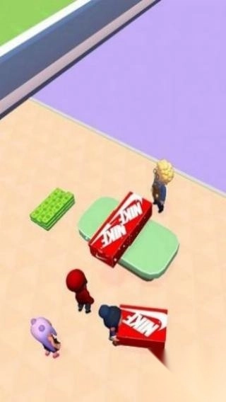 1、呈现的是角色围绕收银台互动的场景,推测是模拟店铺经营(如餐厅、商店等)类,玩家可能需完成收银、服务顾客等经营操作。