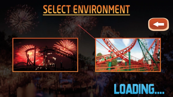 1、在游戏主界面,点击播放按钮,进入环境选择,挑选喜欢的过山车场景(如日间、夜间烟花场景)。