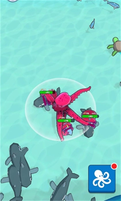 4、玩法轻松易上手,只需滑动屏幕就能操控章鱼移动,依照箭头指示去寻觅并吞噬目标,点击图标还能升级能力。