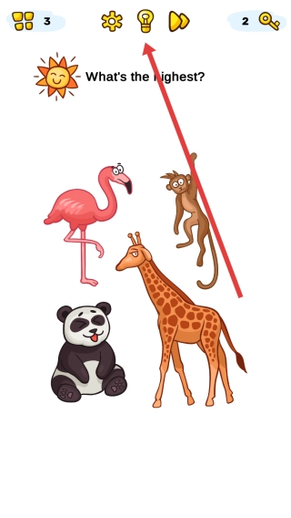 3、第三题“What's-the-highest”,遇到可以按照箭头方向,通过点击灯泡图案按钮获得提示。