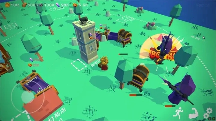 2、从上面下来的怪物会分别攻击左右两侧的炮塔,而下方出现的怪物则会径直攻击屋子。因此,在左右两座炮塔能够抵挡怪物之后,先在下方建造一座炮塔,架好炮后投入部分资源即可,随后由主角负责防守下方。