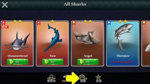 这款游戏拥有极为精美的卡通画面,玩家能够随意解锁鲨鱼并对其进行培养。