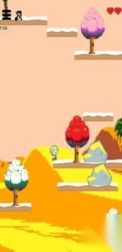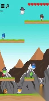 3、在持续探索过程中,若碰到新角色(像戴礼帽的白色角色这类),需灵活操控角色进行跳跃动作,穿越复杂的地形(山地与草地相结合的地形),维持生命值,以此推动游戏进程,进而解锁更多的场景与内容。