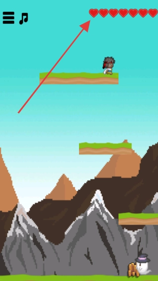 2、进入游戏场景后,关注角色上方的爱心(生命值),操控角色在草地地形跳跃前行,跨越沟壑等障碍,同时留意沿途可能出现的道具或敌人。