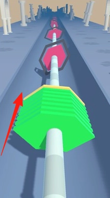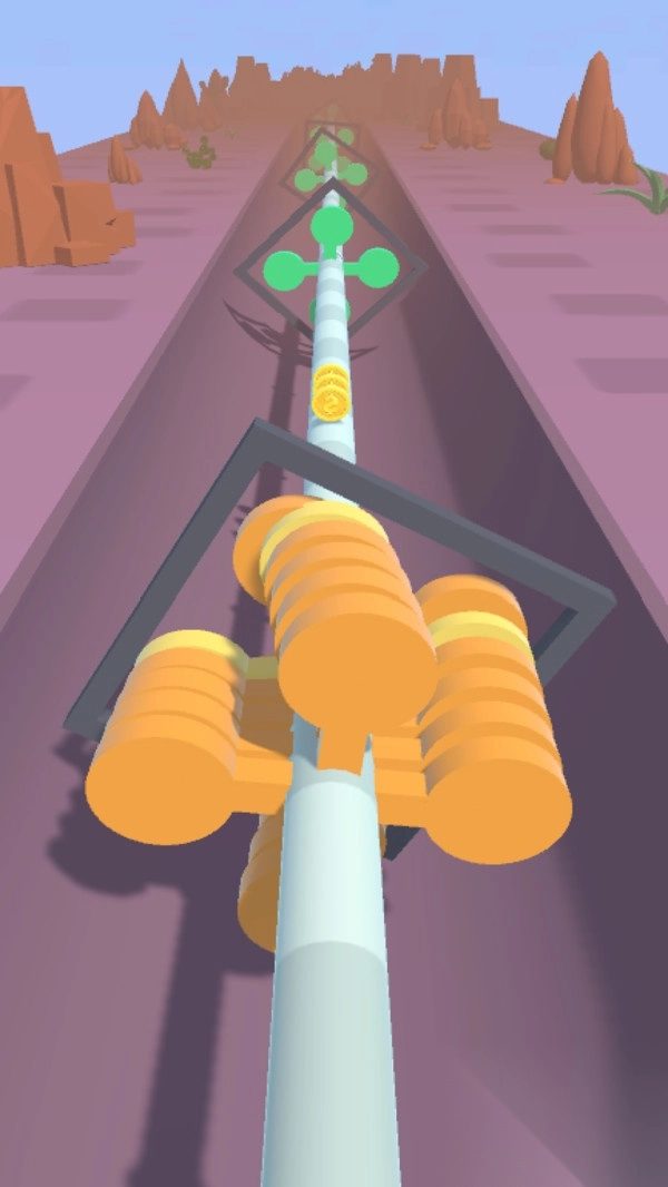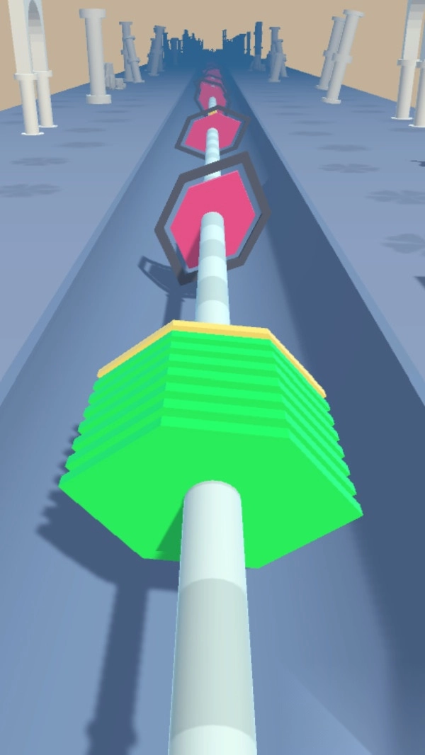 1. 操控黄、紫、绿三色球柱,使其形状与路径上的三叶草、圆环、八边形等缺口适配,穿过这些缺口并持续推进。