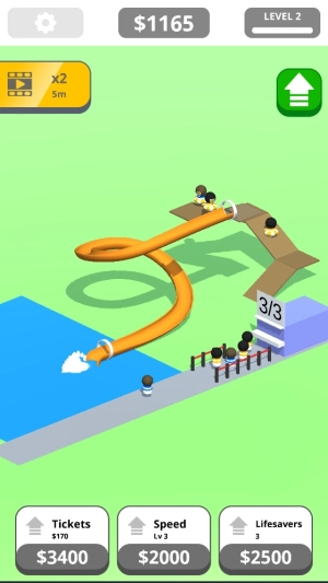 1若想打造属于自己的水上游乐场,玩家需构建各式各样的滑道以及游泳池,以此吸引更多顾客前来嬉戏,让他们尽情感受水上乐园热闹非凡的景象与欢乐愉悦的氛围。