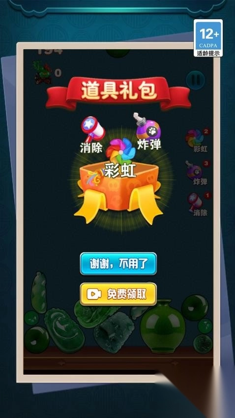 3、建议优先合成特殊道具翡翠福禄寿三色石,此道具能瞬间清除整行宝石,从而扭转战局。