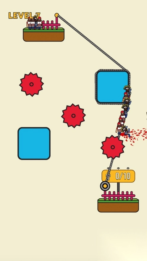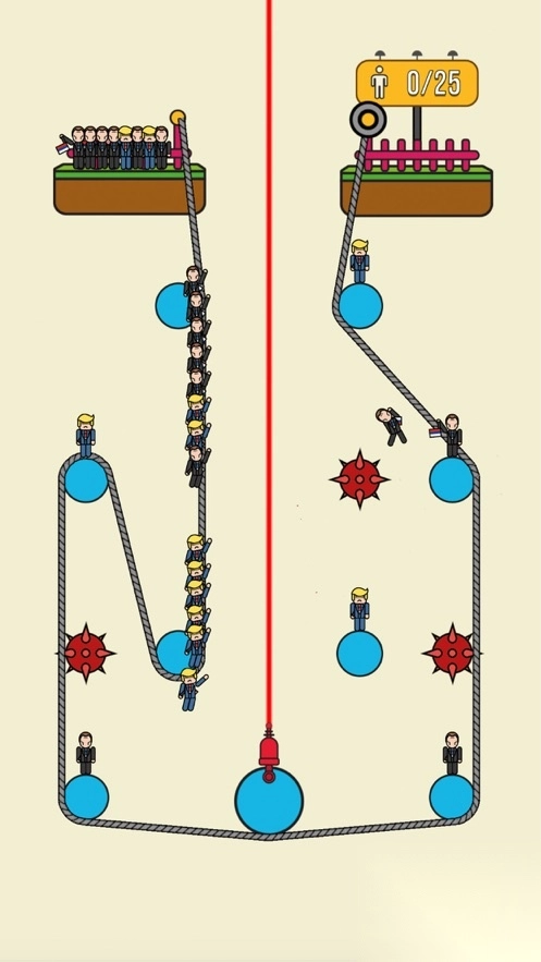 《救援小分队》是一款兼顾策略与操作的休闲益智游戏。在游戏里,玩家置身于复杂的机械场景之中,需要操控绳索去缠绕齿轮,进而驱动平台,将小人成功运送到安全区域。游戏巧妙融合了物理力学与路径规划元素,玩家必须精准计算绳索的缠绕角度,巧妙避开尖刺陷阱。同时,在齿轮相互咬合的动态过程中,准确把握运输的最佳时机。游戏精心设计了数百个充满创意的关卡,玩家能够从基础的绳索缠绕操作,逐步体验到多齿轮联动的策略进阶,充分感受脑力与操作紧密结合带来的救援挑战。