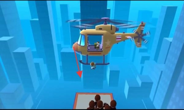 2、高空救援到达指定点后,等待直升机吊运,从高楼平台(红框)起飞,脱离危险区域。