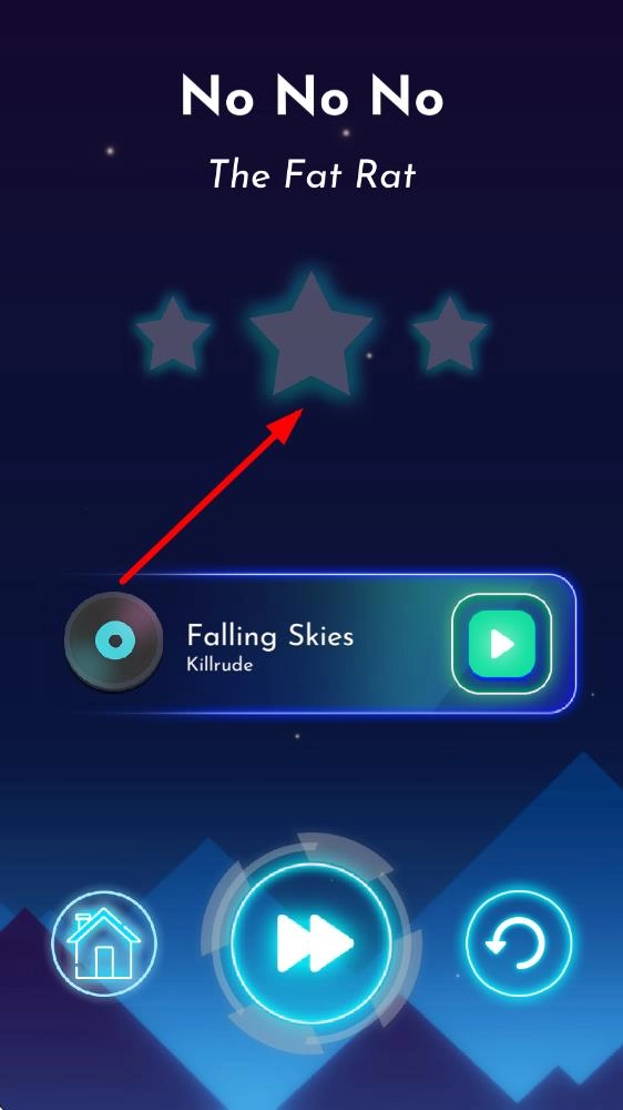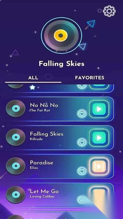 1、进入界面选择喜欢的音乐关卡,点击屏幕让光点随节拍跳跃,在霓虹闪烁的平台间开启节奏挑战。