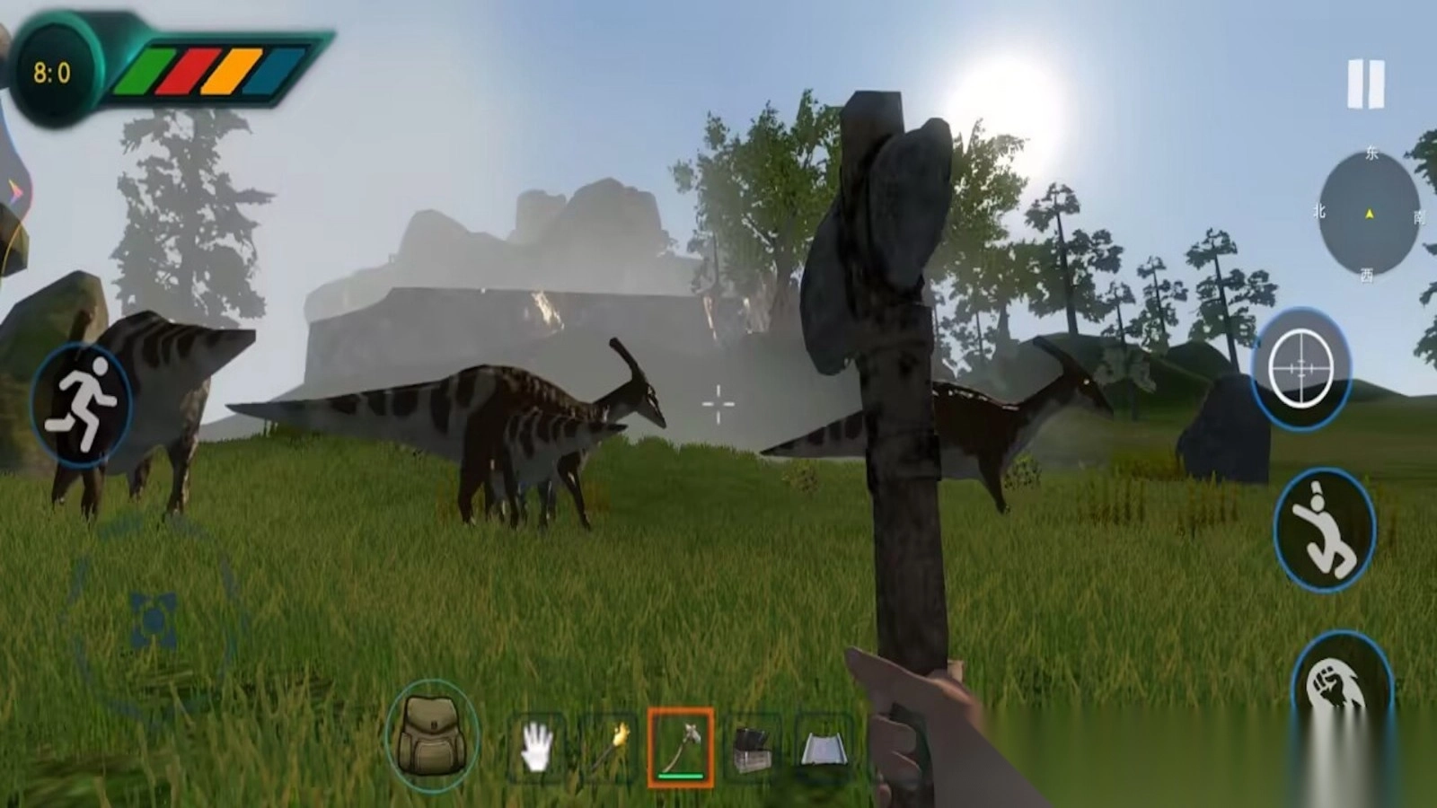 1. 要在岛屿上展开探索,寻觅食物、水源及其他资源,从而保障恐龙能够生存下去。