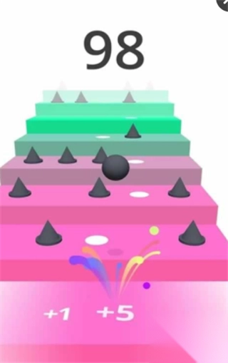 1. 连续踩踏白点加分并变色:当小球接连踩到楼梯的白色区域时,不仅能获取分数加成,还会引发楼梯产生奇妙的颜色变化,这一设计为闯关过程增添了视觉上的惊喜,也让玩家有了策略方面的追求。