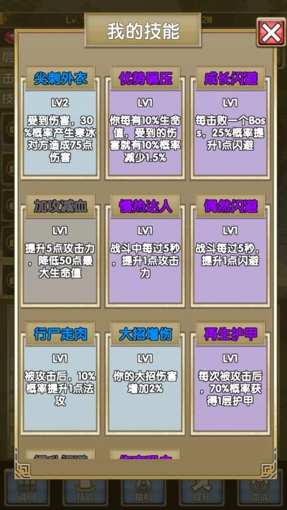 3、随着关卡的进行,敌人是越来越强的,需要你选择更多的天赋来提升战斗力。