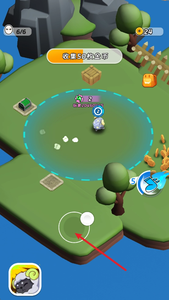 1、进入场景之后,拖动屏幕即可出现虚拟摇杆,控制角色进行移动。