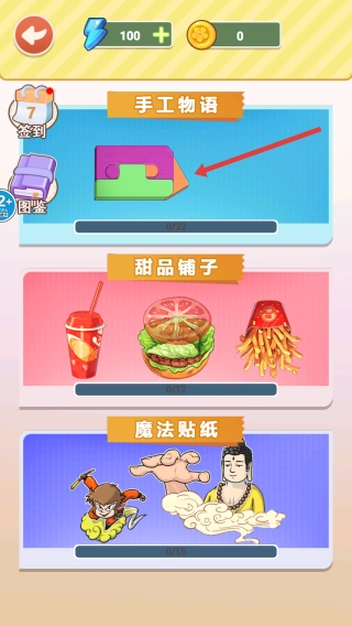 1、启动游戏:点击“开始游戏”,进入游戏主界面,可选“手工物语”“甜品铺子”等模块。