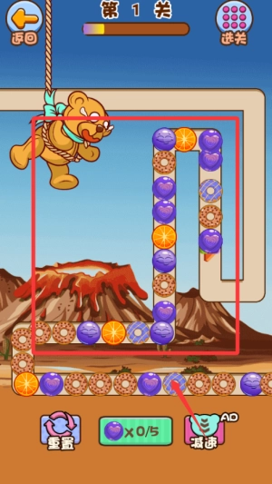 解救玩具熊的行动,将以消除玩法开启一场玩具熊大救援。玩家需快速消除水果方块,搭建起安全通道,避免玩具熊从高处掉落。关卡里还巧妙融入了萝卜刀等趣味性道具,给经典的消除玩法增添新感觉。随着关卡逐步推进,各类特殊障碍与惊喜奖励会接连登场。底部的道具栏备有多种辅助工具,在关键时候能帮你摆脱困境。