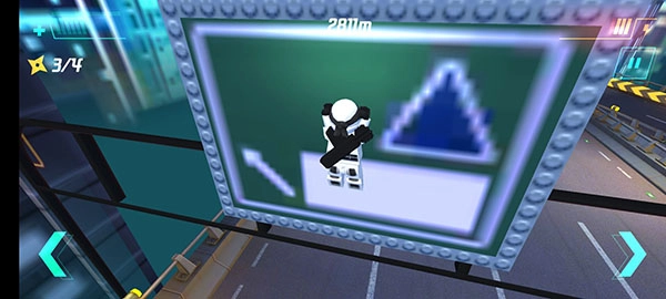 4、使用垂直和侧边滚动动作攀爬升降机井并跑过门厅。