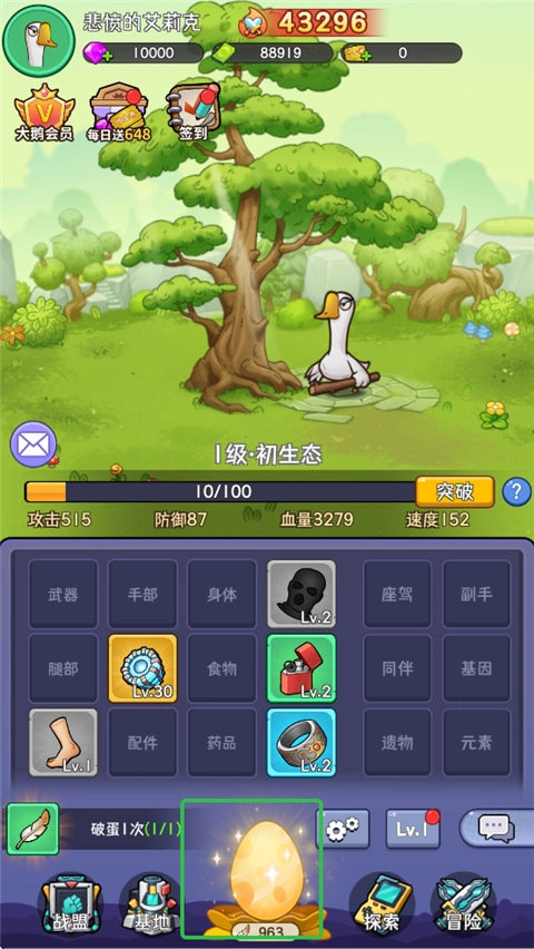 2. 登录即送888体力、10000钻石、限定坤鹅头像以及传说能量核心。