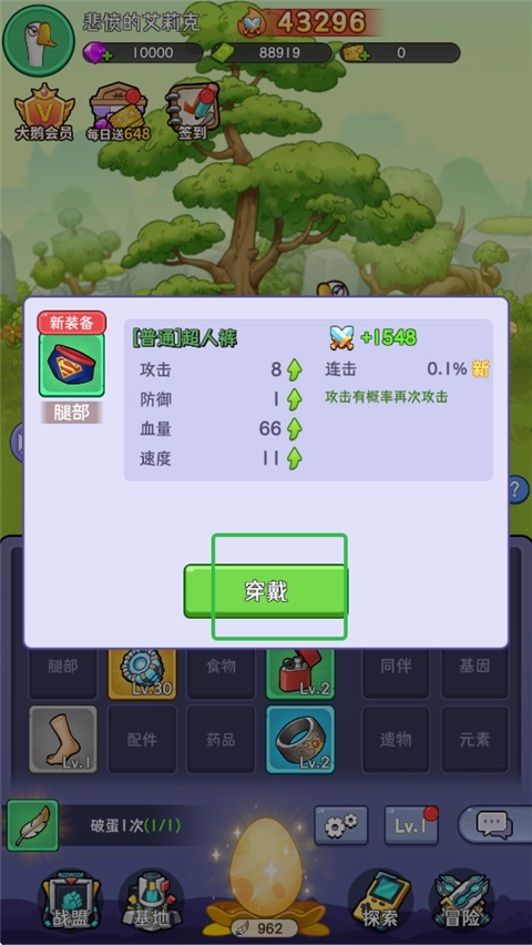2、随后便能够开启宝箱,同时可获取装备,点击穿戴后,就能增加攻击、防御、血量等属性。