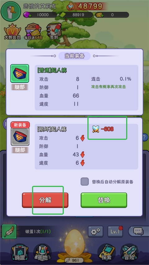 3、要是能获取到更优质的装备,就能够进行替换,而旧装备则可通过分解来获取资源。