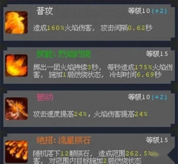 优先升级被动技能,以此提升火焰伤害,普通攻击维持适中程度,从而节省资源。