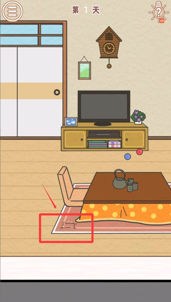 3、需要找到私房钱在哪里,看看这里鼓鼓的点击一下地毯看看是否有惊喜。
