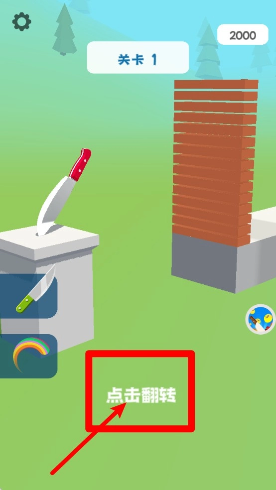 1.关卡指令提示:点击画面下方按钮进行“点击翻转”操作,完成切割挑战的关键前置步骤。