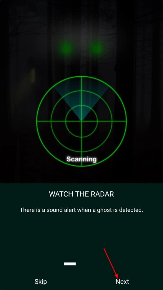 2、探测期间,通过滑动屏幕来调整“灵波强度”滑块,能够改变鬼影出现的频率和形态。点击“雷达扫描”按钮,则会触发虚拟波纹特效,使整蛊的真实感得到增强。