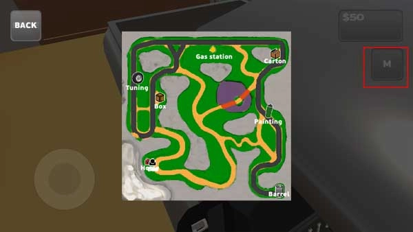 5、右边的M表示地图,打开它就能知道目的地和自己的所在位置了。