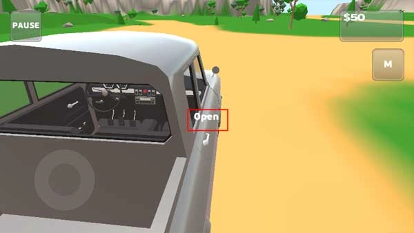 8、那要怎么开车门或者其他大门呢?方法是把白色的点对准门,此时会弹出“open”字样,点击这个字样就能打开门了。