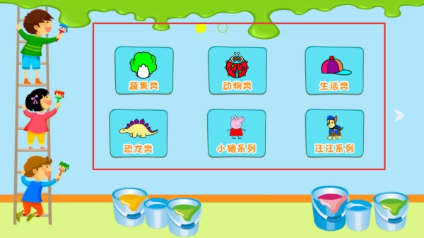 2. 在分类页面,从【蔬果类】【动物类】等分类中任选其一,随后进入涂色对象页面。