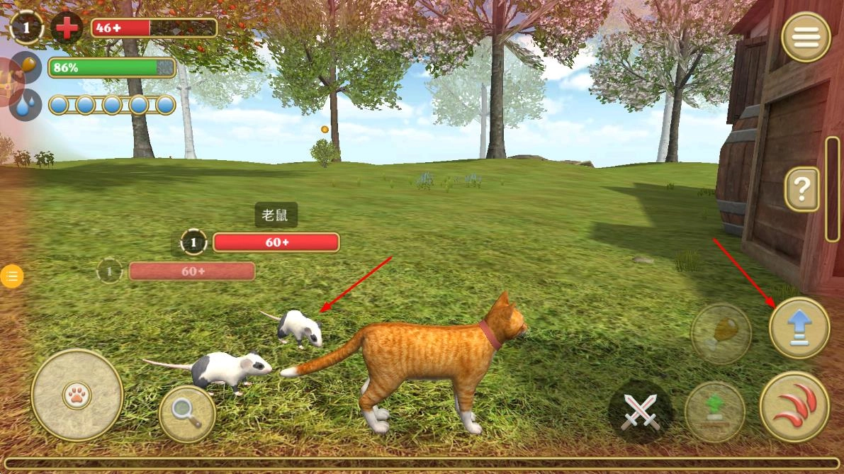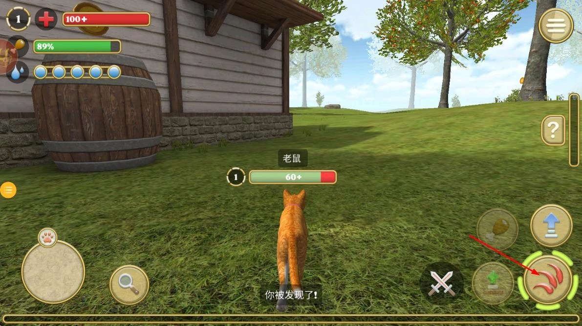 2、当【老鼠】被发现时,点击右下角呈红色爪痕状的按钮,即可发起互动或者攻击。