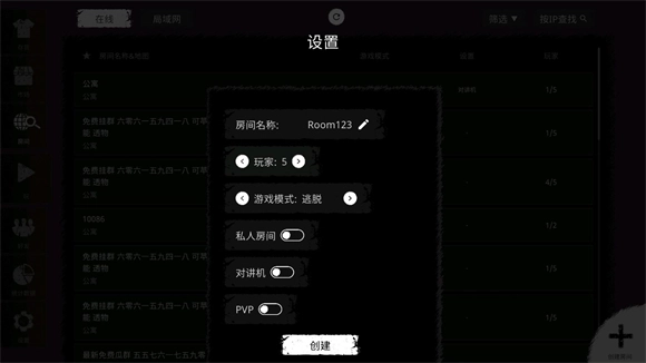 4、在页面右下角点击“创建房间”,就能自行创建房间并邀请好友一起游玩。