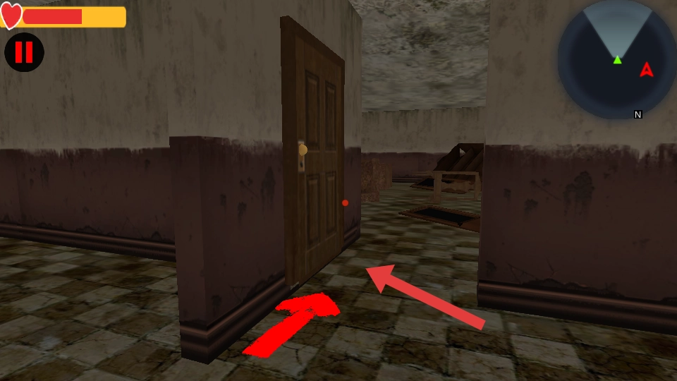 1. 依照地面红色箭头所指方向前行,顺着走廊展开探索,同时留意周边的家具与环境,红色箭头会引领你抵达关键区域。