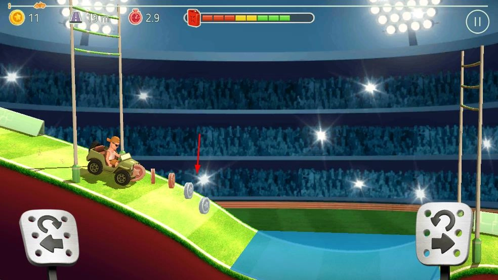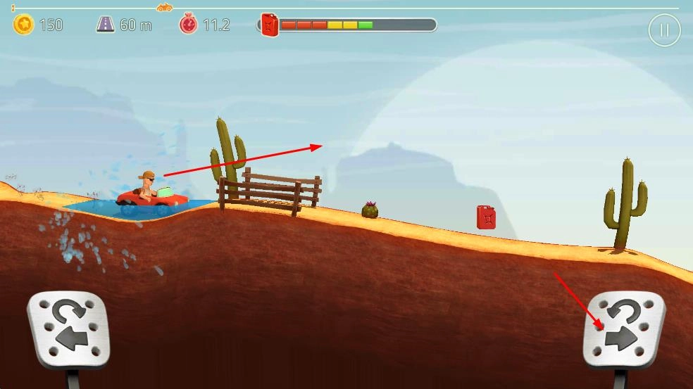 1. 在沙漠之类的场景里,借助左右方向按钮来控制车辆行驶,以应对斜坡、木桥等不同地形,与此同时收集金币,积攒资源。