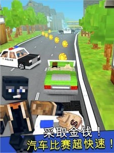 3、方块风格营造轻松视觉:画面与场景均采用方块风格进行设计,从方块人角色,到街道、银行等场景元素,造型皆简洁可爱。这种设计使得整体视觉效果轻松明快,能有效缓和逃生追逐过程中的紧张气氛。
