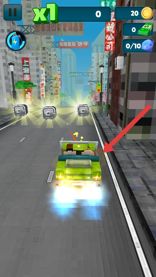 1. 于城市街道行车过程中,要留意前方诸如发光保险箱之类的道具,尽可能操控车辆去收集,与此同时,观察道路两旁的建筑以及障碍物。