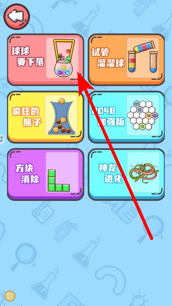 1. 当您进入应用,来到玩法选择界面时,会看到球球、下落试管、溜溜球等多种玩法陈列其中。玩家能够依据自身喜好,从中挑选一种玩法,进而开启挑战。