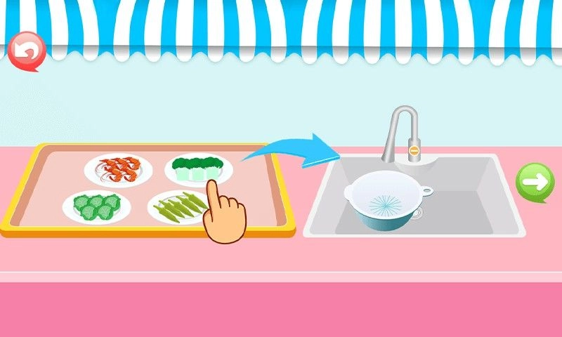 3. 烹饪流程:模仿实际的烹饪操作,涵盖切菜、放入锅中、煮至熟透、添加调料等环节,使小朋友感受完整的烹饪过程。