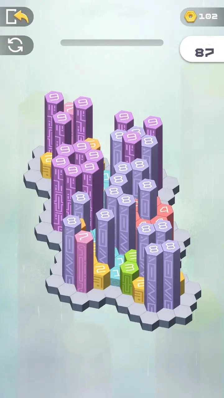 1.别具一格的消除方法,轻点柱状模型,使各异的数字抵达同一平面,就能轻松完成挑战。