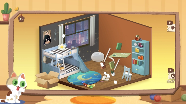 《收纳天才》为玩家呈现轻松休闲的收纳整理玩法。游戏里,玩家会直面被猫咪搞得乱七八糟的房间。为了把房间彻底整理干净,玩家需将大量散落各处的物品,分别归置到不同的合适区域,让整个房间重归整齐有序,尽情体验收纳整理带来的无尽欢乐。