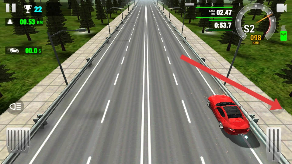 2、正确运用氮气功能,当屏幕下方的氮气条完全累积满格时,点击“NITRO”按钮,即可触发加速效果。建议优先在直道行驶或超车过程中使用该功能。