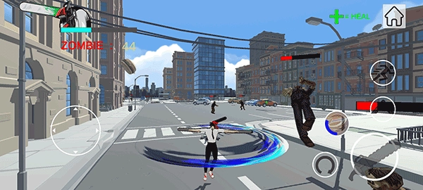 2、丰富操作与简易战斗:借助虚拟按键可完成移动、跳跃、翻滚、攻击以及技能释放等多种操作,其操作逻辑清晰明了,而僵尸仅具备单一攻击模式。
