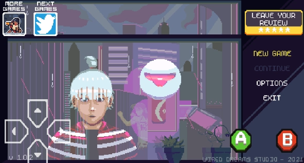 1、于本站安装该游戏并打开进入,点击左侧方向键盘,选择“NEW GAME”,点击绿色按钮A 。